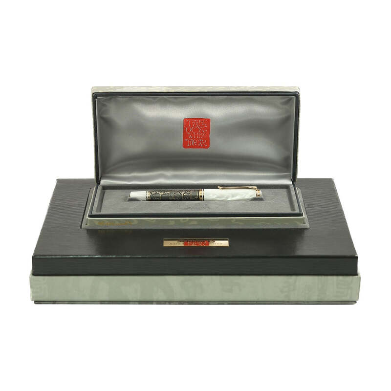 A Pelikan Caneta Tinteiro M924 Tiger - Asia Edição Limitada celebra a escrita tinteiro com proporções equilibradas e refinamento técnico. Clip em formato de bico (Pelikan).