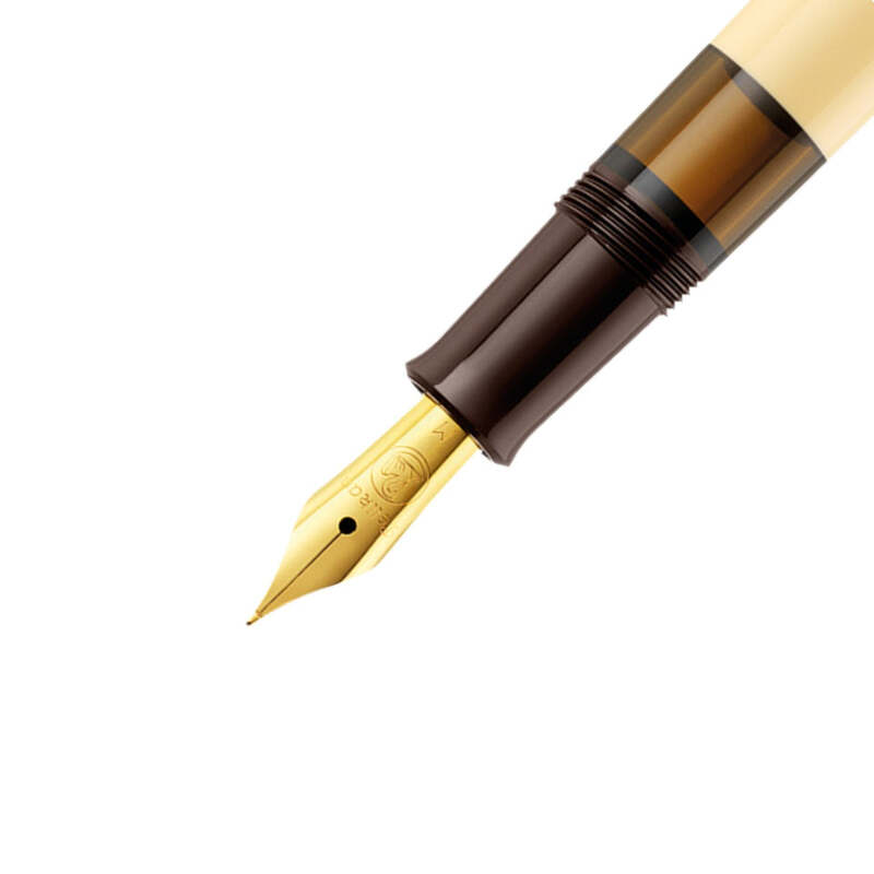 A Pelikan Caneta Tinteiro Classic M200 Cafe Creme - Edição Especial 2015 celebra a escrita tinteiro com proporções equilibradas e refinamento técnico. Clip em formato de bico (Pelikan).
