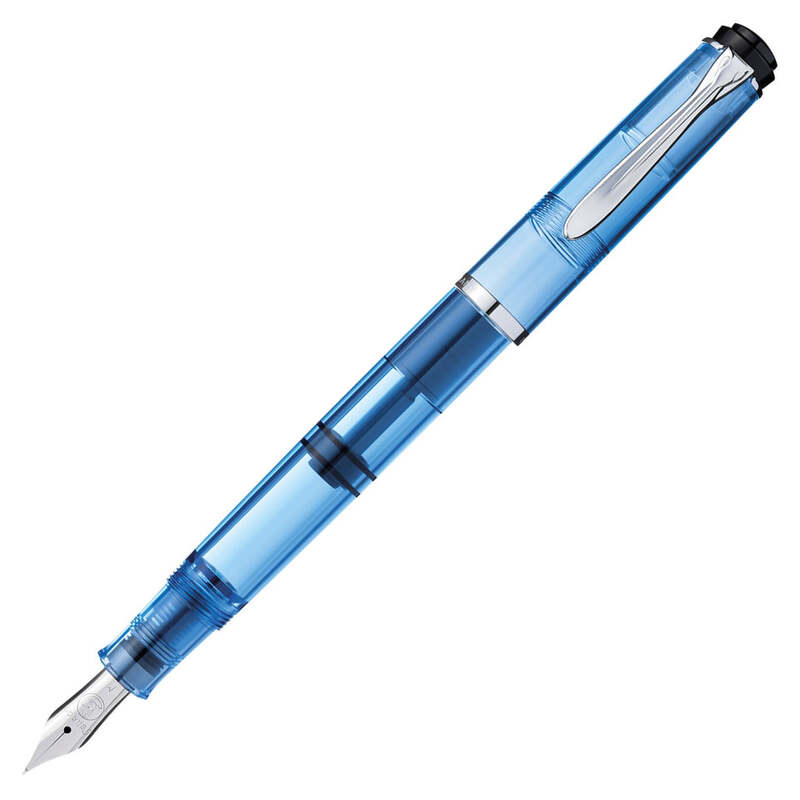 A Pelikan Caneta Tinteiro Classic M205 Light Transparent Set - Edição Especial 2009 celebra a escrita tinteiro com proporções equilibradas e refinamento técnico. Clip em formato de bico (Pelikan).