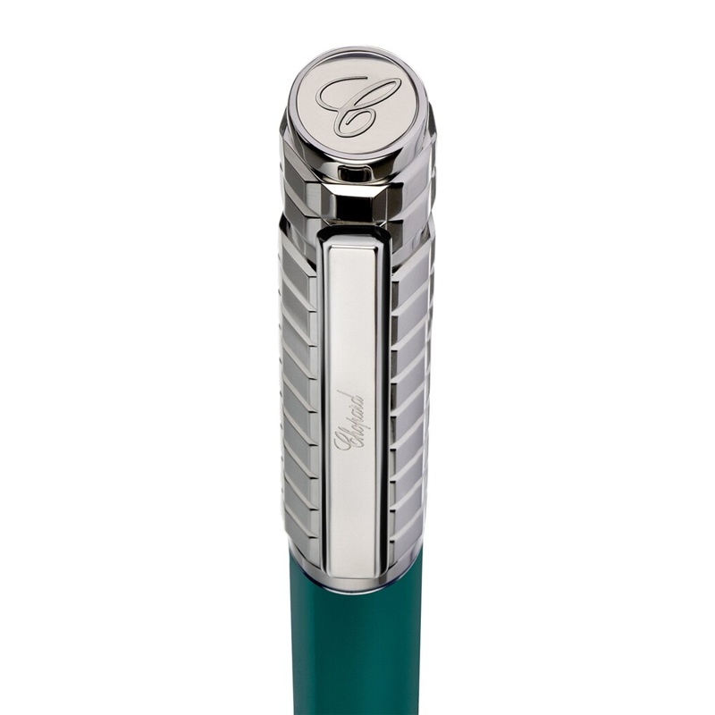 Um logotipo cursivo aumenta sua sofisticação.Chopard evoca sua coleção de joias geométricas Ice Cube através da base nervurada da caneta esferográfica homônima. Habilmente moldada em aço inoxidável,...
