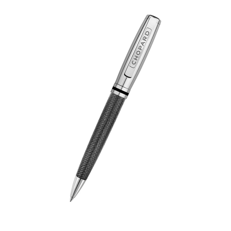 Para descobrir a experiência mais agradável com a escrita à mão, todo escritor merece experimentar o requintado artesanato de uma caneta Chopard. A Swiss House utiliza sua expertise em manipulação de couro para criar um corpo em couro de bezerro granulado que proporciona uma pegada segura em todos os momentos, complementado pelo elegante metal prateado. É uma peça de papelaria atemporal que durará gerações.