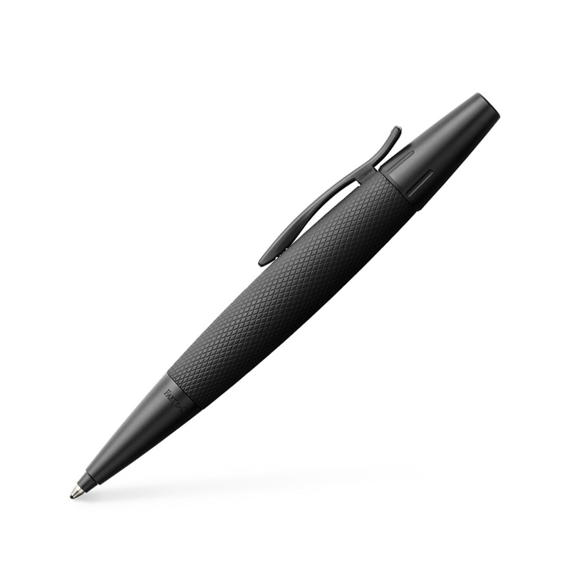 linha E-Motion ganha um design contemporâneo e masculino em preto fosco com esta caneta esferográfica da Faber-Castell. Feita com corpo de alumínio anodizado e ponta e tampa giratória cromadas, esta caneta com formato dinâmico certamente completará qualquer mesa.