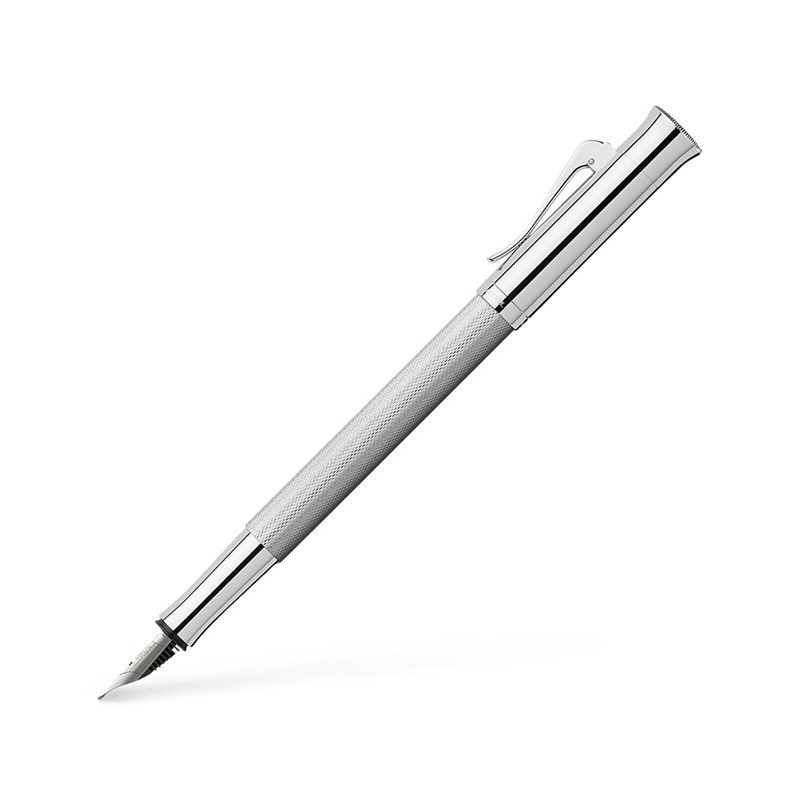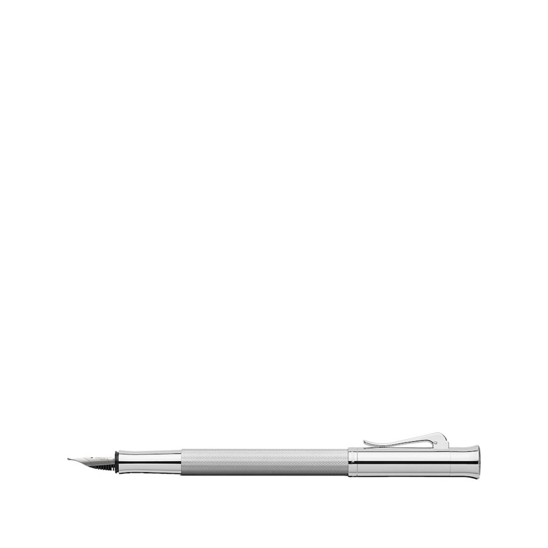 série Guilloche da Graf von Faber-Castell é feita a partir de corpos de resina preciosa gravados individualmente, laqueados à mão e polidos repetidamente. Os resultados comprovam o excepcional trabalho artesanal empregado em cada instrumento; observe a qualidade da pena de ouro 18 quilates e os acabamentos banhados a ródio desta caneta-tinteiro, por exemplo.