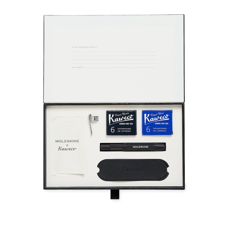 Você provavelmente conhece a Moleskine principalmente por seus cobiçados cadernos, mas de que adianta um caderno sem a ferramenta certa para preenchê-lo com suas ideias brilhantes? É por isso que este vem acompanhado de uma caneta-tinteiro da Kaweco, como parte da colaboração da marca com a histórica marca alemã de canetas.