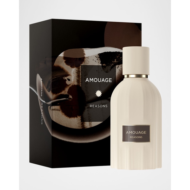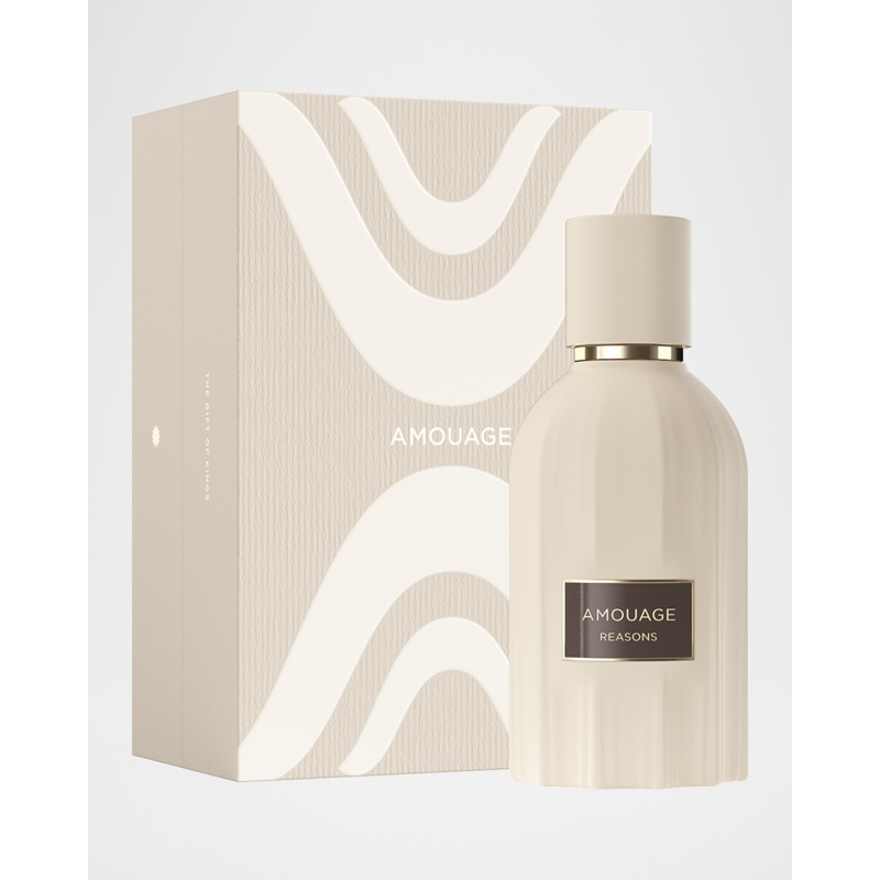 No coração, o patchouli, pinho, cashmeran, âmbar branco, cipriol e davana formam um núcleo complexo e terroso, que adiciona uma camada de riqueza à composição. A base de benjoim, cisto, sândalo, cedro, vetiver, mirra, musgo de carvalho, almíscares brancos e palo santo confere uma finalização amadeirada e balsâmica, que perdura na pele com uma presença magnética. Reasons Essence reflete a maestria da Amouage em criar fragrâncias altamente concentradas com uma sofisticação artesanal.