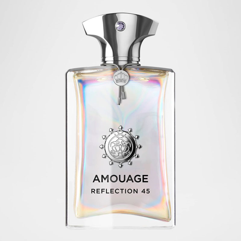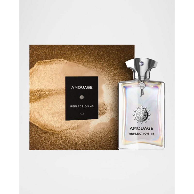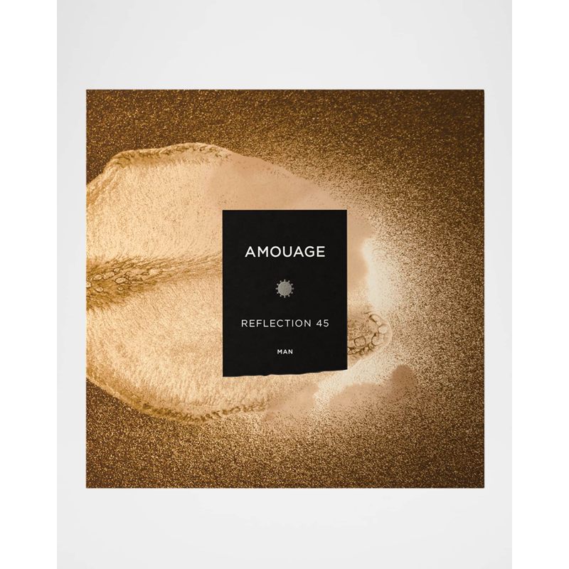 No coração, o neroli, íris, jasmim, angélica, fava tonka e baunilha formam um buquê floral e gourmand, que adiciona uma camada de suavidade e sofisticação à composição. A base de vetiver, patchouli, sândalo, cedro, mirra, olíbano e opoponax confere uma finalização amadeirada e balsâmica, que perdura na pele com uma presença magnética. Reflection Man 45 reflete a habilidade da Amouage em reinterpretar um ícone com potência e modernidade.