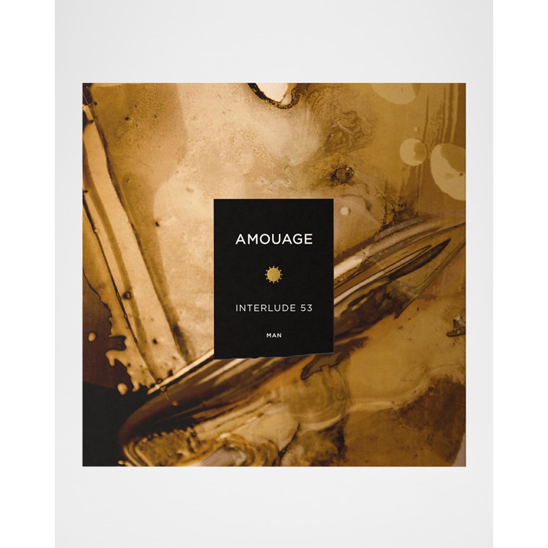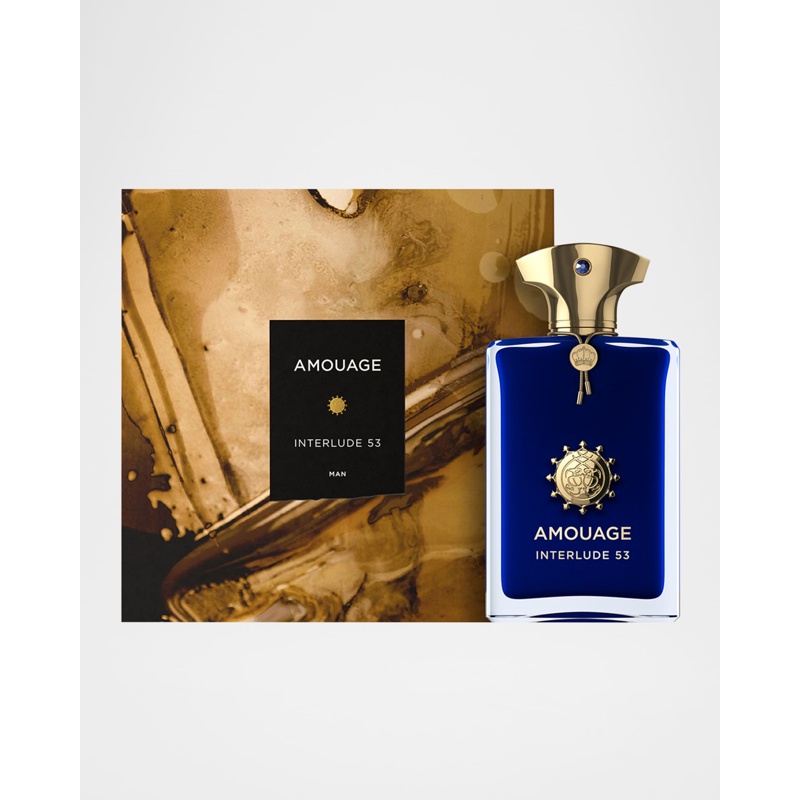 No coração, o âmbar, olíbano, cisto e opoponax formam um núcleo balsâmico e resinoso, que adiciona uma camada de profundidade à composição. A base de couro, fumaça de agarwood, patchouli e sândalo confere uma finalização amadeirada e intensa, que perdura na pele com uma presença magnética. Interlude 53 reflete a maestria da Amouage em criar fragrâncias que equilibram contrastes com uma sofisticação artesanal.