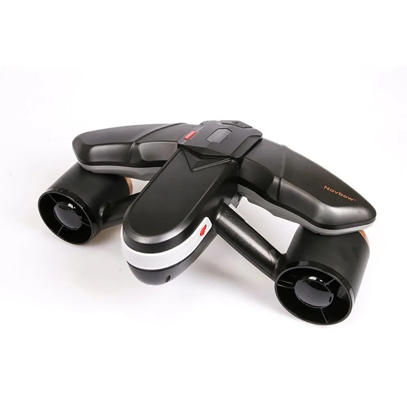 A estrutura hidrodinâmica da Scooter de água Navbow+ minimiza o arrasto, enquanto os controles intuitivos oferecem manuseio simples e preciso, mesmo para usuários que utilizam luvas de mergulho. A ergonomia é cuidadosamente pensada para garantir conforto durante todo o uso.