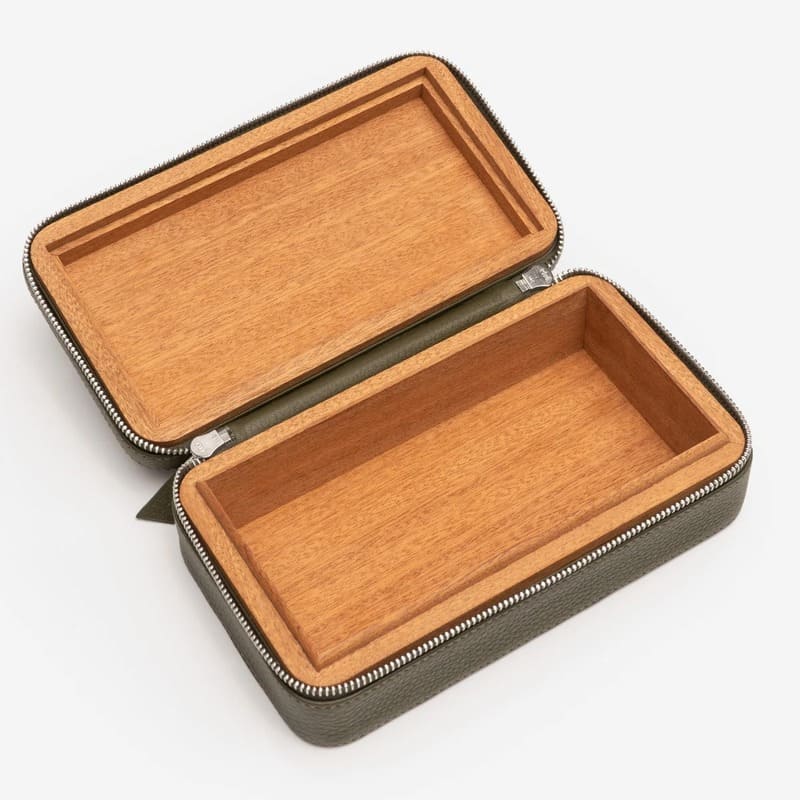 Ideal para colecionadores e entusiastas, o Umidor Boîte à Cigares Pappy Boyington Taurillon Caqui eleva o ritual de degustar um charuto, oferecendo não apenas preservação, mas também uma experiência completa de luxo. É um investimento que une tradição, tecnologia e design atemporal.