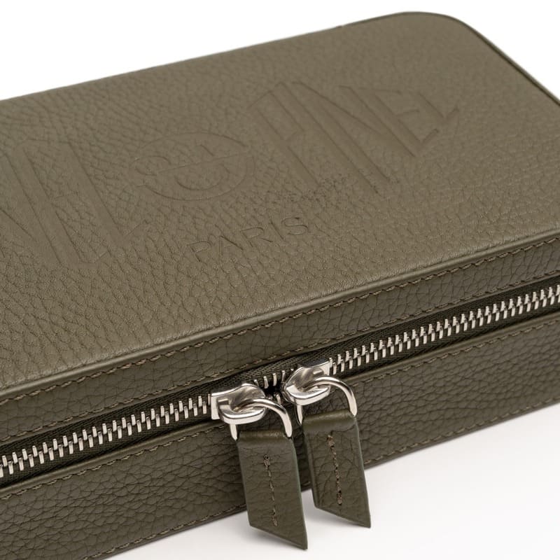 O Umidor Boîte à Cigares Pappy Boyington Taurillon Caqui da Pinel & Pinel é uma peça de excelência artesanal, desenvolvida para oferecer o ambiente perfeito para a preservação de charutos premium. Seu design combina funcionalidade avançada e estética refinada, tornando-o não apenas um acessório, mas também um símbolo de sofisticação para o apreciador exigente.