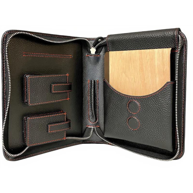 Fabricado com materiais de altíssima qualidade, como madeiras nobres e acabamentos de precisão, a Bandeja de metal para bolsa de charuto Adorini proporciona um ambiente controlado que mantém a umidade uniforme, evitando deformações ou alterações no sabor dos charutos. Sua construção robusta assegura longa durabilidade e um toque de sofisticação.