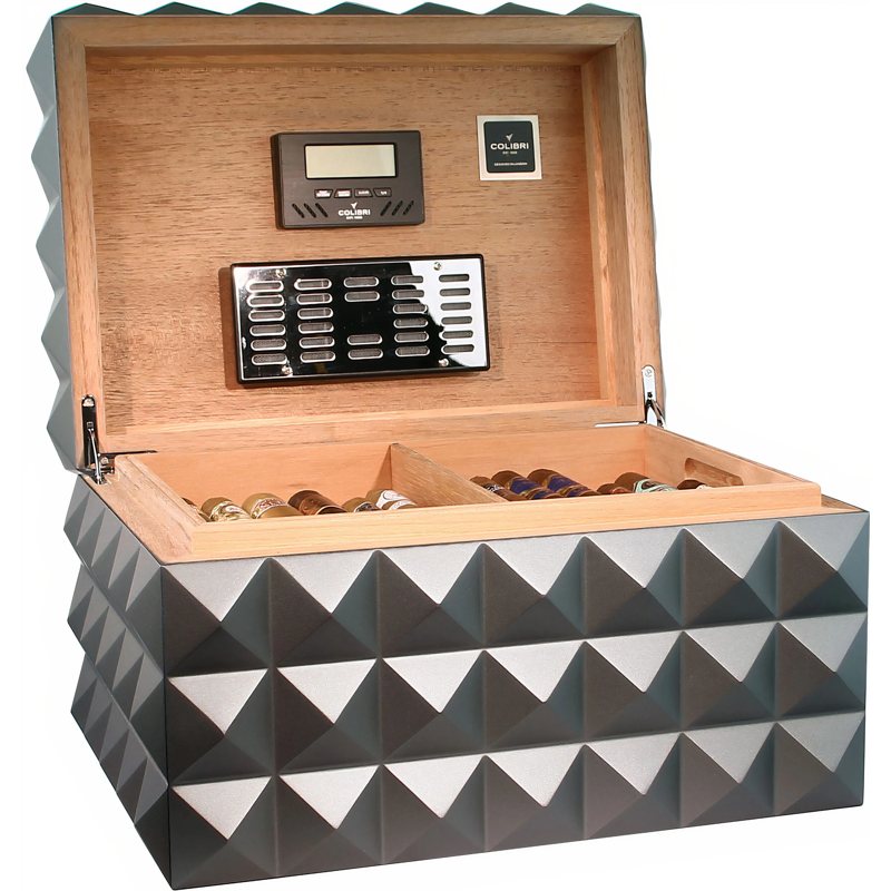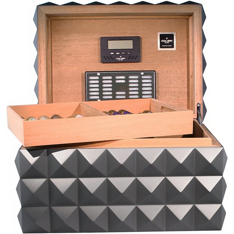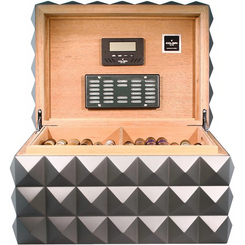 O Umidor Grand Quasar cinza da Colibri é uma peça de excelência artesanal, desenvolvida para oferecer o ambiente perfeito para a preservação de charutos premium. Seu design combina funcionalidade avançada e estética refinada, tornando-o não apenas um acessório, mas também um símbolo de sofisticação para o apreciador exigente.