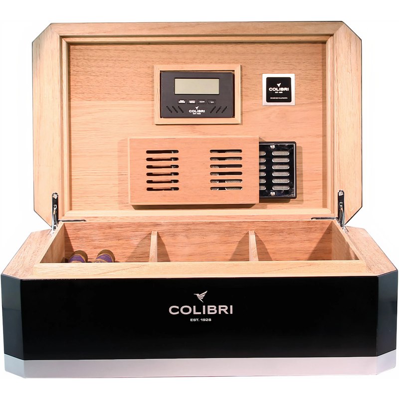 O Umidor Rally preto e prata da Colibri é uma peça de excelência artesanal, desenvolvida para oferecer o ambiente perfeito para a preservação de charutos premium. Seu design combina funcionalidade avançada e estética refinada, tornando-o não apenas um acessório, mas também um símbolo de sofisticação para o apreciador exigente.
