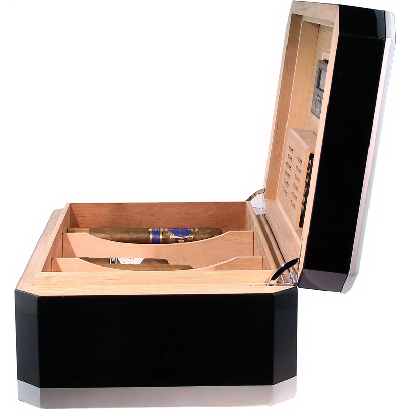 Construído com materiais nobres, este umidor proporciona isolamento ideal contra variações externas de temperatura e umidade. Cada detalhe foi cuidadosamente pensado para garantir a integridade dos charutos, mantendo seu aroma, textura e sabor originais ao longo do tempo.