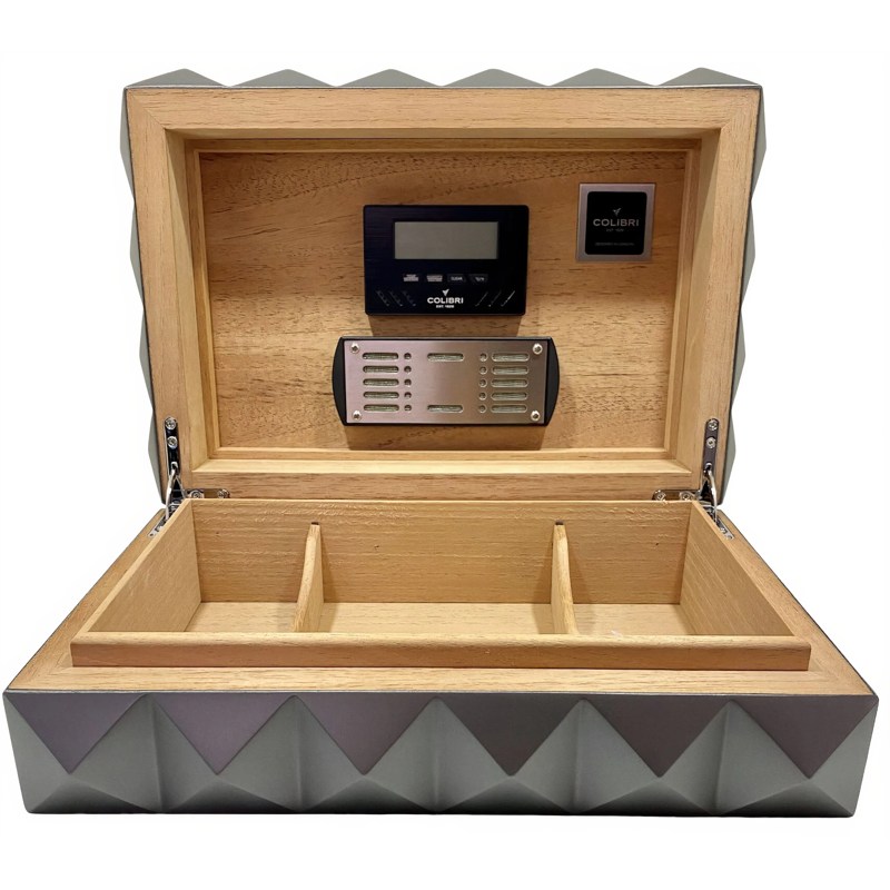 O Umidor Quasar Gun 40-45 Cigars da Colibri é uma peça de excelência artesanal, desenvolvida para oferecer o ambiente perfeito para a preservação de charutos premium. Seu design combina funcionalidade avançada e estética refinada, tornando-o não apenas um acessório, mas também um símbolo de sofisticação para o apreciador exigente.