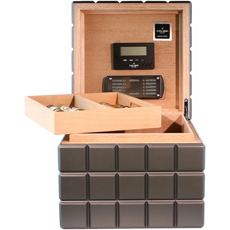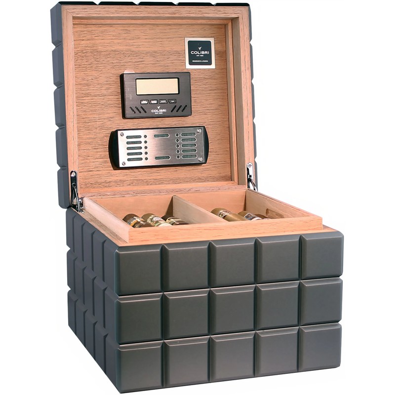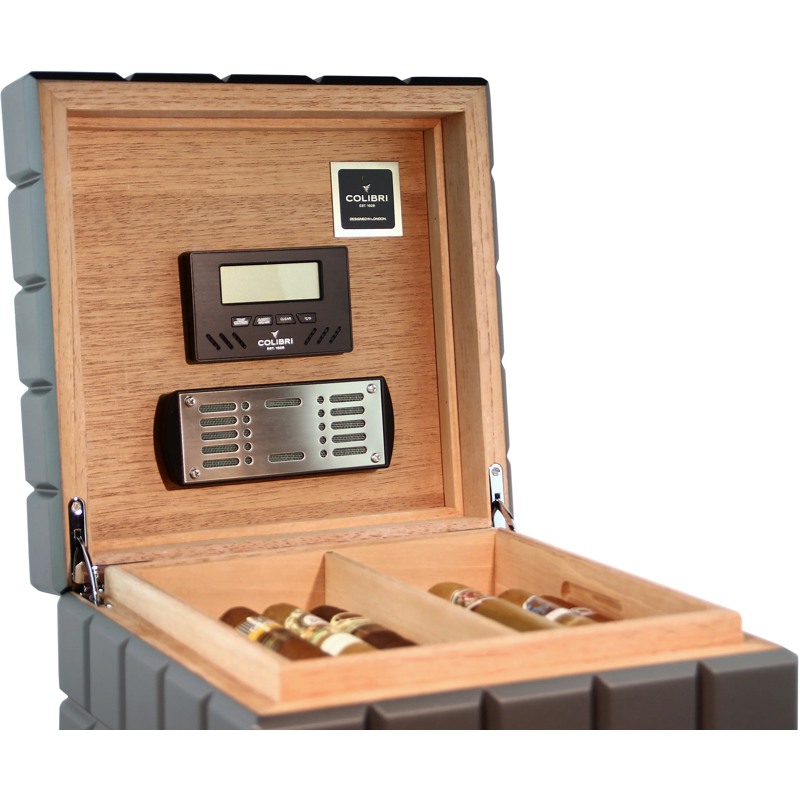 O Umidor Heritage Cube Cinza Antracite da Colibri é uma peça de excelência artesanal, desenvolvida para oferecer o ambiente perfeito para a preservação de charutos premium. Seu design combina funcionalidade avançada e estética refinada, tornando-o não apenas um acessório, mas também um símbolo de sofisticação para o apreciador exigente.