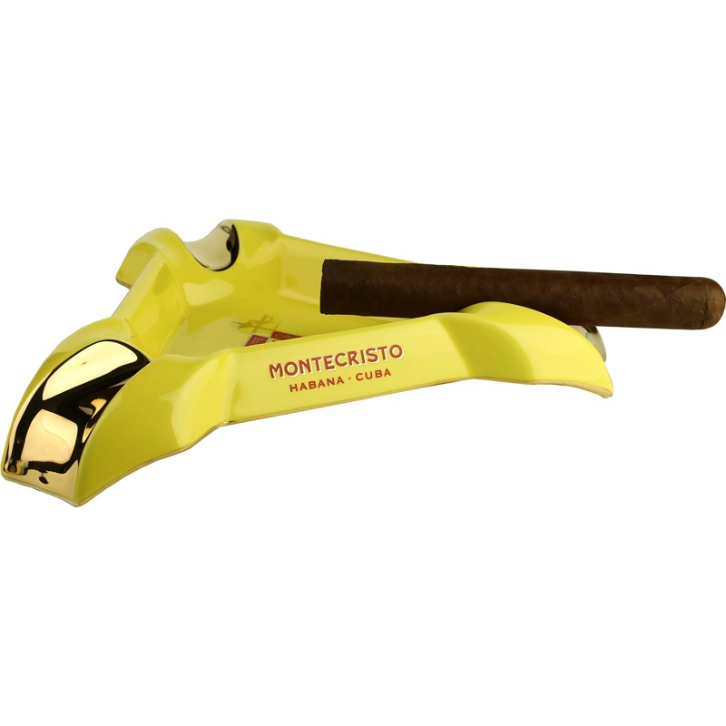O Cinzeiro para 3 charutos amarelo-ouro da Montecristo é uma peça que transcende a função básica de um cinzeiro, transformando-se em um verdadeiro elemento de sofisticação para o ambiente de fumadores exigentes.