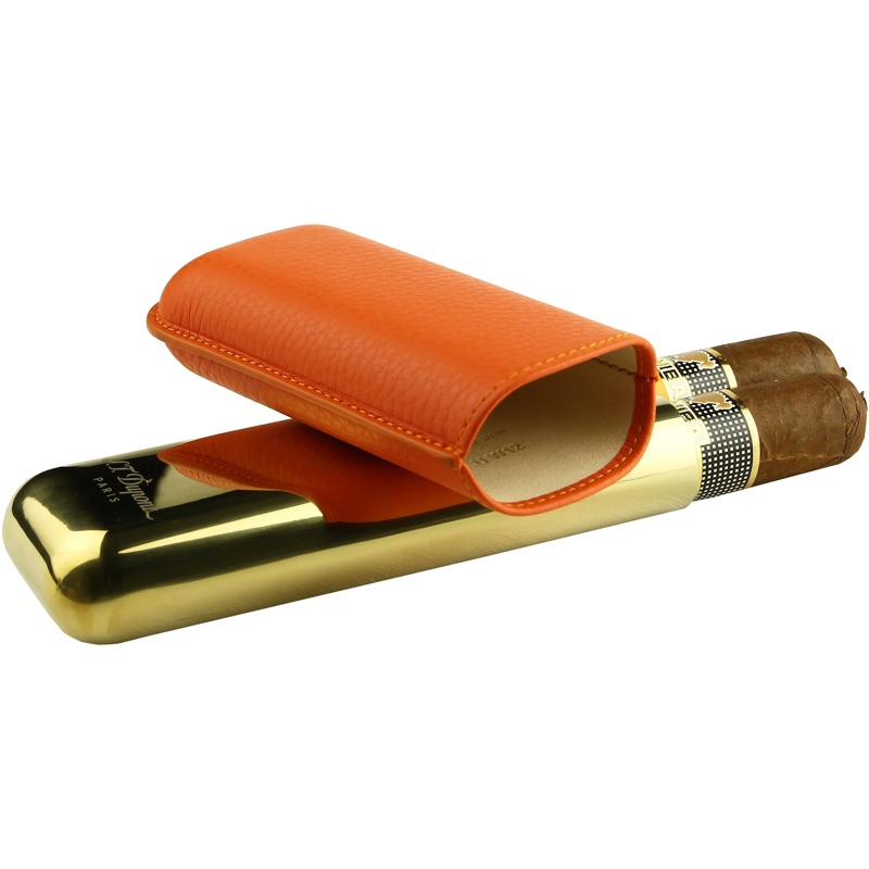 O Estojo para 2 charutos laranja/dourado 183256 da S.T. Dupont é um acessório de luxo projetado para transportar seus charutos com sofisticação e segurança. Seu design exclusivo combina elegância e funcionalidade, tornando-o indispensável para aficionados exigentes.