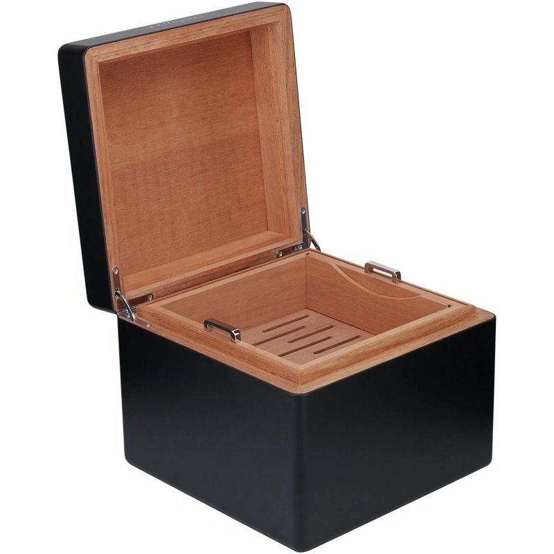 A tecnologia de vedação do Umidor Cube Preto 001316 assegura um microclima estável, enquanto seu interior é revestido com madeira nobre — elemento essencial para um envelhecimento natural e equilibrado das folhas. Este cuidado minucioso garante que cada charuto seja degustado como pretendido pelo mestre tabaqueiro.