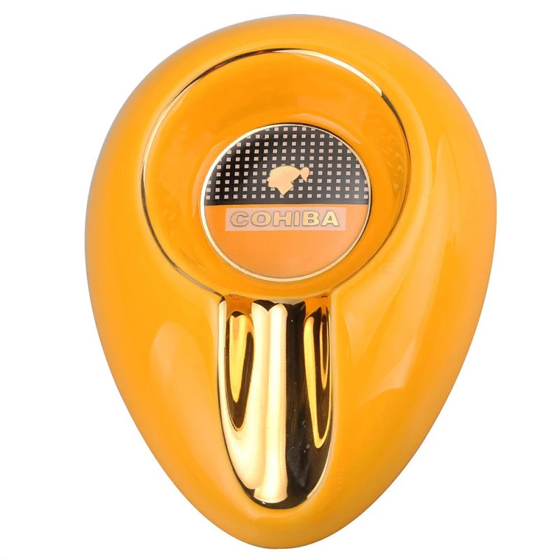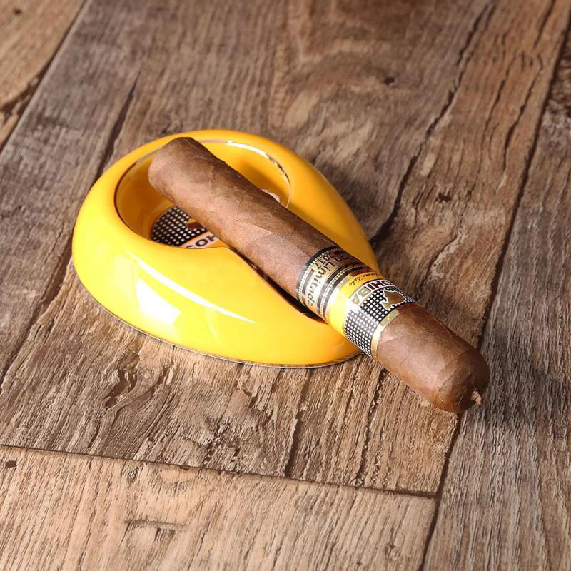 O Cinzeiro de Ceramica Pequeno para 1 Charuto - Amarelo da Cohiba é uma peça que transcende a função básica de um cinzeiro, transformando-se em um verdadeiro elemento de sofisticação para o ambiente de fumadores exigentes.
