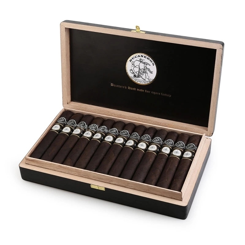 Cada tragada revela um mosaico de sabores: chocolate amargo, café torrado e um toque de especiarias terrosas que evolui com suavidade, reminiscente de uma noite de gala. A construção artesanal, feita com tabacos premium, garante uma queima uniforme, permitindo que cada nuance se revele com precisão. Este charuto é uma prova da dedicação da Bucanero's à qualidade, transformando cada momento em uma experiência sensorial inesquecível.