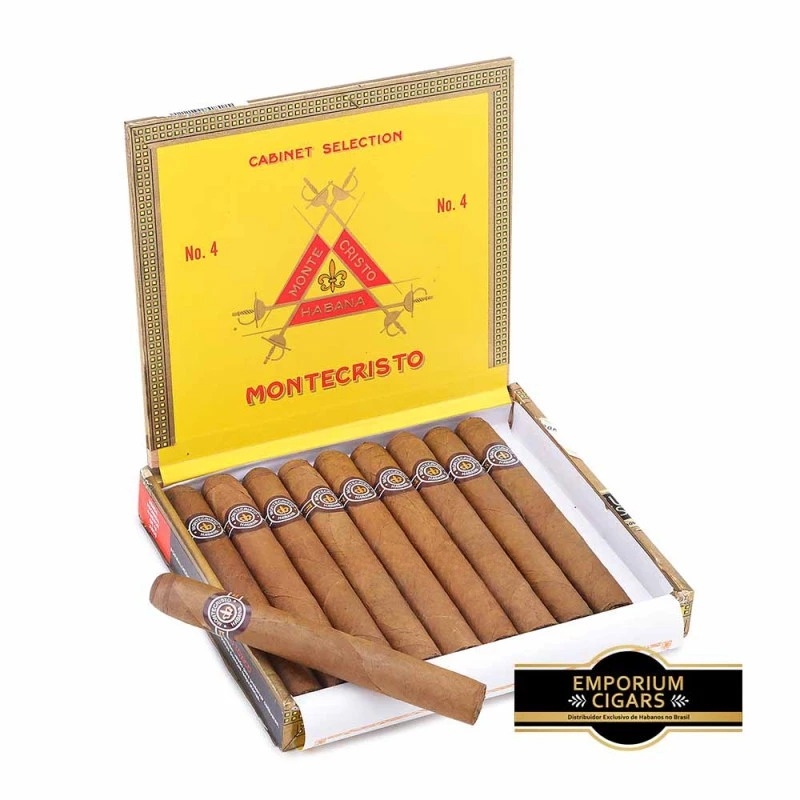 O Montecristo No. 4 é uma expressão icônica da tradição cubana, combinando elegância clássica com uma sofisticação atemporal. Sua capa Vuelta Abajo, cultivada nos solos lendários de Pinar del Río, apresenta tons dourados e sedosos, prometendo uma experiência de sabor suave e equilibrada. Com 5,1 polegadas de comprimento e um anel de 42, este charuto é projetado para momentos de pausa elegante, ideal para ocasiões casuais ou sofisticadas. A caixa com 10 unidades reforça sua exclusividade, perfeita para colecionadores.