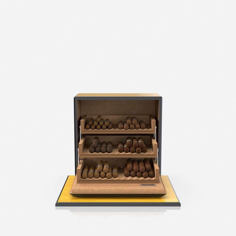 O Umidor Sycamore Laca Amarela da Pinel & Pinel é uma peça de excelência artesanal, desenvolvida para oferecer o ambiente perfeito para a preservação de charutos premium. Seu design combina funcionalidade avançada e estética refinada, tornando-o não apenas um acessório, mas também um símbolo de sofisticação para o apreciador exigente.
