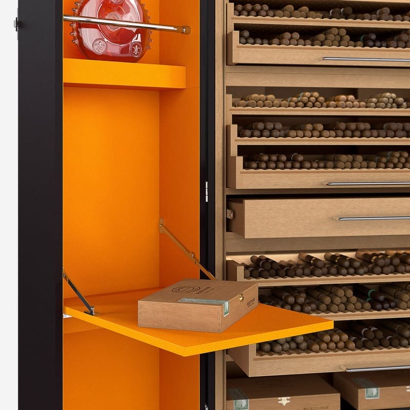 Construído com materiais nobres, este umidor proporciona isolamento ideal contra variações externas de temperatura e umidade. Cada detalhe foi cuidadosamente pensado para garantir a integridade dos charutos, mantendo seu aroma, textura e sabor originais ao longo do tempo.