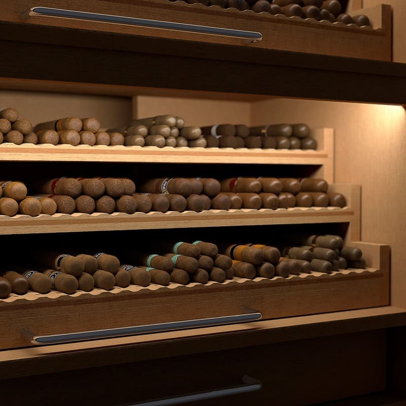 Construído com materiais nobres, este umidor proporciona isolamento ideal contra variações externas de temperatura e umidade. Cada detalhe foi cuidadosamente pensado para garantir a integridade dos charutos, mantendo seu aroma, textura e sabor originais ao longo do tempo.