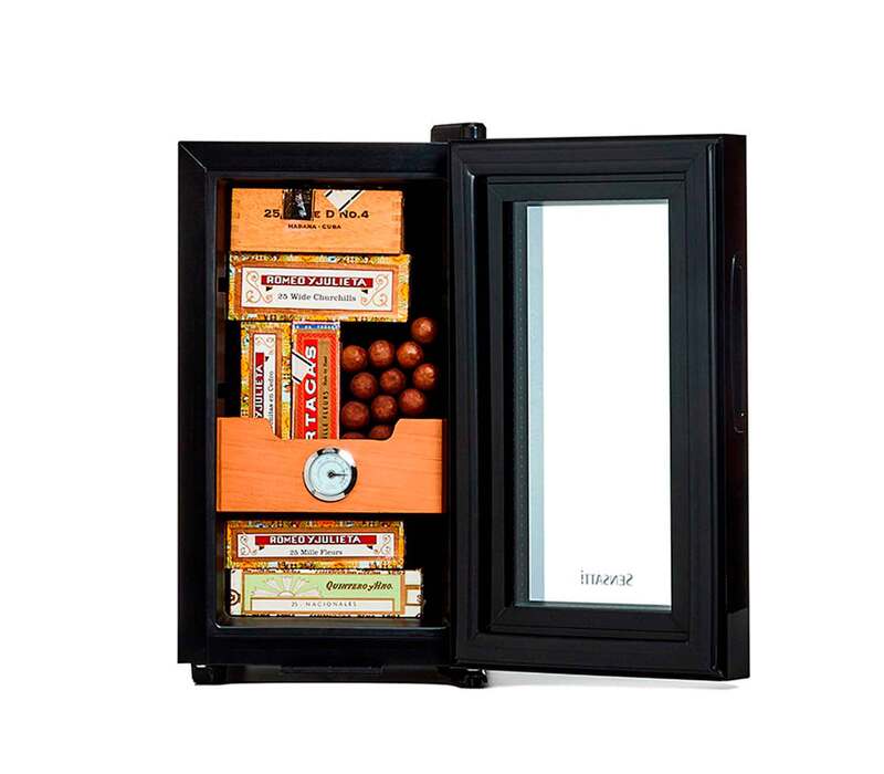 Com design exclusivo, o Termoumidor Sensatti traz ao Brasil um jeito novo, elegante e prático de armazenar seus charutos. Uma de suas características é o uso da tecnologia termoelétrica, que permite o resfriamento do ambiente interno e dispensa o uso de compressor. Dessa maneira, há mais espaço para acomodar toda a sua coleção, nenhum ruído no ambiente e baixo consumo de eletricidade.