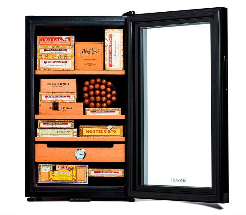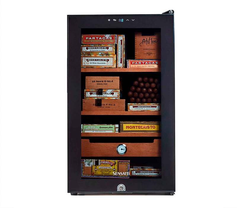 Com design exclusivo, o Termoumidor Sensatti traz ao Brasil um jeito novo, elegante e prático de armazenar seus charutos. Uma de suas características é o uso da tecnologia termoelétrica, que permite o resfriamento do ambiente interno e dispensa o uso de compressor. Dessa maneira, há mais espaço para acomodar toda a sua coleção, nenhum ruído no ambiente e baixo consumo de eletricidade.
