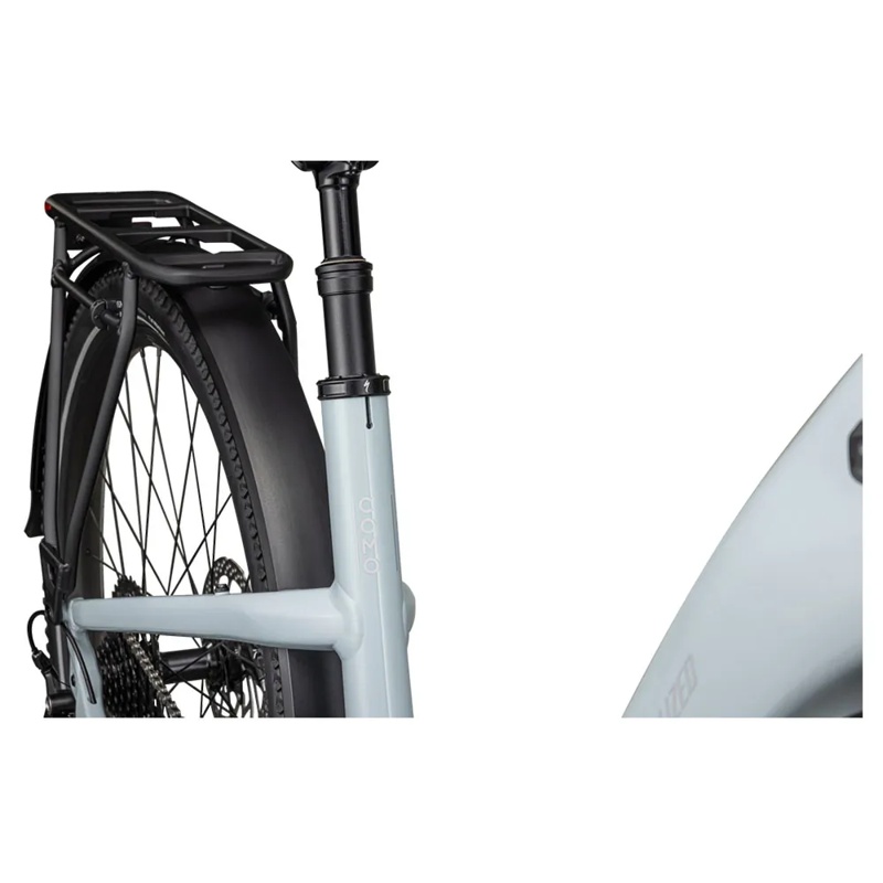 • Principais especificações Quadro: Alumínio E5, suporte do motor no movimento central, bateria totalmente integrada e bloqueável no tubo inferior, roteamento interno dos cabos, suporte para trava e bagageiro dianteiro Garfo: SR Suntour Mobiea32, curso de 80 mm, trava, suportes para para-lamas, suporte de luz integrado Motor: Specialized 2.0, torque de 70 Nm, motor com ajuste personalizado, 250 W nominais Bateria: Specialized U2-710, caixa de liga, visor de estado de carga, 710 Wh Grupo Câmbio traseiro: Shimano, RD-U4000, CUES, GS de 9 velocidades, superior normal, design Shadow, fixação direta Trocadores: Shimano, SL-U4000-9R, CUES, direito, Rapidfire de 9 velocidades, com visor óptico de marcha Manivelas: Braços de manivela forjados em liga personalizada Coroas: 40D Cassete: Shimano, CS-LG300-9, CUES, 9 velocidades, 11-41D Freio dianteiro: Shimano BR-MT200, disco hidráulico, 180 mm Freio traseiro: Shimano BR-MT200, disco hidráulico, 160 mm Corrente: Shimano LG500 Movimento central: Rodas Aros: 650B para disco, liga de parede dupla, com pinos, 32 furos Pneus: Hemisphere com proteção contra furos Reflect, 650B x 2.3 Componentes Guidão: Conjunto de guidão/avanço Specialized Como Avanço: Avanço integrado Specialized Selim: Body Geometry Comfort Gel, 200 mm de largura com suporte SWAT™ Canote do selim: Suspensão de mola, liga, curso de 40 mm, 30.9 mm, braçadeira de 2 parafusos, tubo de 34.9 mm Pedais: Specialized Commuter com fita adesiva e refletores