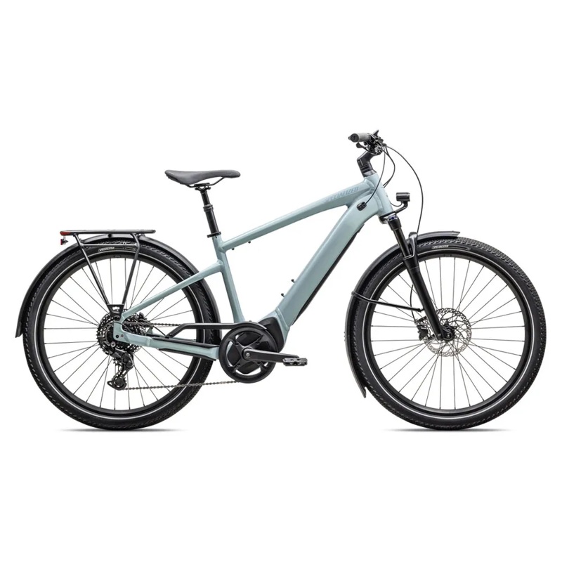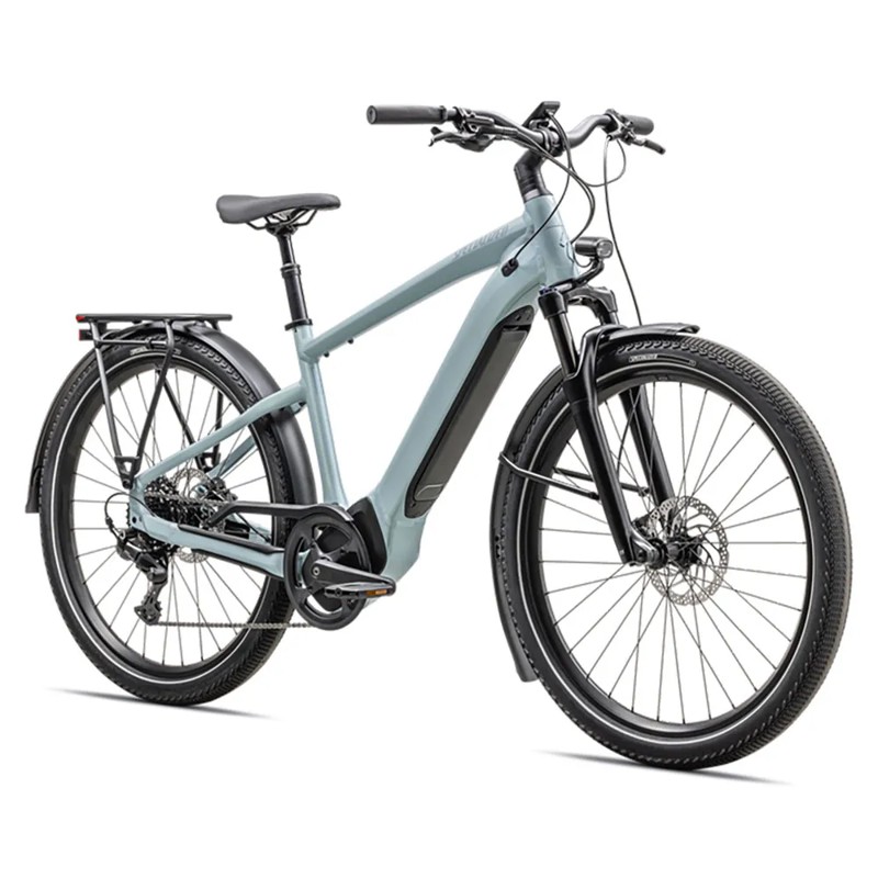 • Principais Especificações Quadro: Alumínio E5, Suporte do Motor no Movimento Central, Bateria Totalmente Integrada e Travável no Tubo Inferior, Roteamento Interno de Cabos, Suporte para Trava e Bagageiro Dianteiro, Dropout Deslizante Garfo: SR Suntour Mobiea32, Curso de 80mm, Trava, Suporte para Pára-lamas, Suporte Integrado para Farol Motor: Specialized 2.0, Torque de 70Nm, Motor com Ajuste Personalizado, 250W Nominais Bateria: Specialized U2-710, Carcaça de Liga, Indicador de Carga, 710Wh Grupo Câmbio Traseiro: Shimano, RD-U4000, CUES, 9 Velocidades, Top Normal, Design Shadow, Fixação Direta Trocadores: Shimano, SL-U4000-9R, CUES, Direita, 9 Velocidades Rapidfire, com Visor Óptico de Marcha Pedivela: Braços de Liga Personalizados Forjados, 170mm Coroas: 48D Cassete: Shimano, CS-LG300-9, CUES, 9 Velocidades, 11-41D Freio Dianteiro: Shimano BR-MT200, Disco Hidráulico, 180mm Freio Traseiro: Shimano BR-MT200, Disco Hidráulico, 180mm Corrente: Shimano LG500 Rodas Aros: 650B Disco, Parede Dupla em Liga, Pinado, 32 Furos Pneus: Pathfinder Sport Reflect, 650Bx2.3 Componentes Guidão: Specialized, Liga, 15 Graus de Curvatura para Trás, 46mm de Elevação, 31.8mm Mesa: Specialized Flowset, Liga Forjada em 3D, 20 Graus de Elevação, Abraçadeira de 31.8mm Selim: Bridge Sport, Trilhos de Aço, 155mm Canote: Suspensão a Mola, Liga, Curso de 40mm, 30.9mm, Abraçadeira de 2 Parafusos, Tubo de 34.9mm Peso: 26.4Kg (58 Libras, 3.2 Onças) Tamanho: M Pedais: Specialized Commuter com Fita Aderente e Refletores