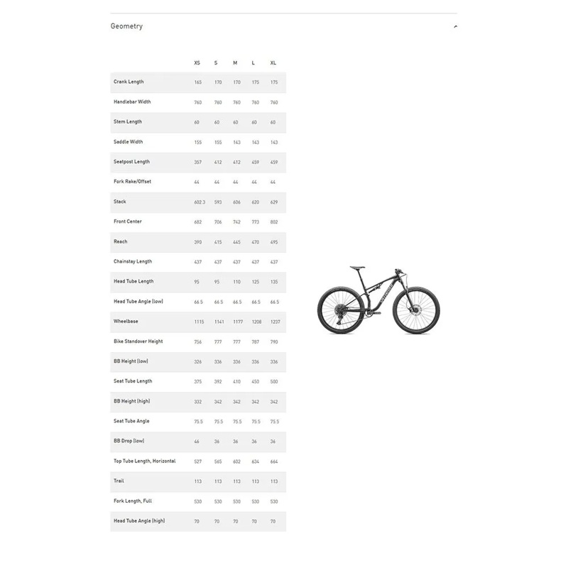 • Especificações principais Quadro: Specialized DAluisio Smartweld M5 Alloy, tubos hidroformados, geometria Xc progressiva, curso de 110 mm, roteamento interno de cabos, caixa de direção BSA, espaçamento de 12x148 mm, compatível com espigão de selim retrátil de 30.9 mm Garfo: Rockshox Recon Silver RL, curso de 120 mm, amortecedor Motion Control, offset de 42 mm, Maxle Stealth, eixo passante de 15x110 Amortecedor traseiro: X-Fusion Pro-02, 190x40 mm, ajuste de retorno, ajuste de compressão Grupo de transmissão Câmbio traseiro: Sram Nx Eagle, 12 velocidades Câmbios: Sram Sx Eagle, gatilho, 12 velocidades Pedivela: Sram Sx Eagle, Powerspline, coroa de 32 dentes, 165/170/175 mm Coroas: 32 dentes Cassete: Sram Pg-1210 Eagle 11-50T Freio dianteiro: Sram Level T Hydraulic Disc, pinça de 2 pistões, rotor de 180 mm Freio traseiro: Sram Level T Hydraulic Disc, pinça de 2 pistões, rotor de 160 mm Corrente: Sram Sx Eagle, 12 velocidades Movimento central: Sram Powerspline BSA Rodas Aros: Specialized Alloy, Tubeless Ready, largura interna de 27 mm, disco, 28H Pneus: Dianteiro - Specialized Ground Control, carcaça Control, composto T5, 29x2.35 // Traseiro - Specialized Fast Trak, carcaça Control, composto T5, 29x2.35 Componentes Guidão: Specialized Alloy, elevação de 20 mm, 31.8 mm, 760 mm de largura Mesa: Specialized, liga 3D-forjada, 4 parafusos, elevação de 7 graus Selim: Body Geometry Power Sport, trilhos de aço, 143/155 mm Espigão de selim: Espigão de selim retrátil Tranzx, 30.9 mm, XS-Sm: 100 mm, M: 125 mm, L-XL: 150 mm Peso: 13.87 kg (30 lb, 9.2 oz) Tamanho: Md