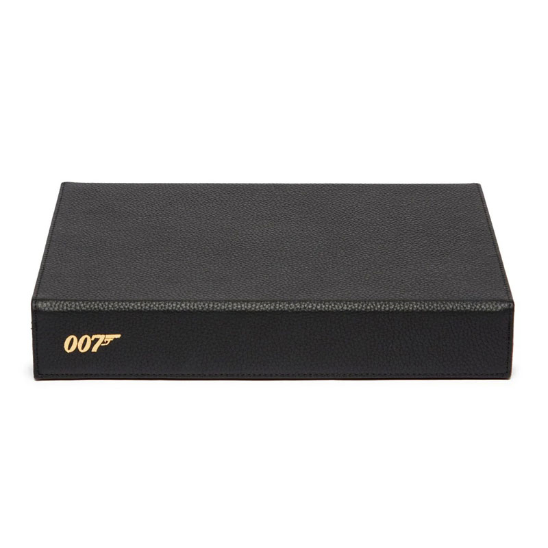 Projetado para ser exibido como peça de coleção, o conjunto vem em uma caixa de madeira acolchoada revestida em couro de grão de seixo suavemente moído, com interior compartimentado em veludo vermelho, evocando luxo em cada traço. A tampa magnética traz o logotipo 007 em dourado e pode ser personalizada à mão com iniciais ou até seis caracteres em letras douradas, tornando cada peça única.