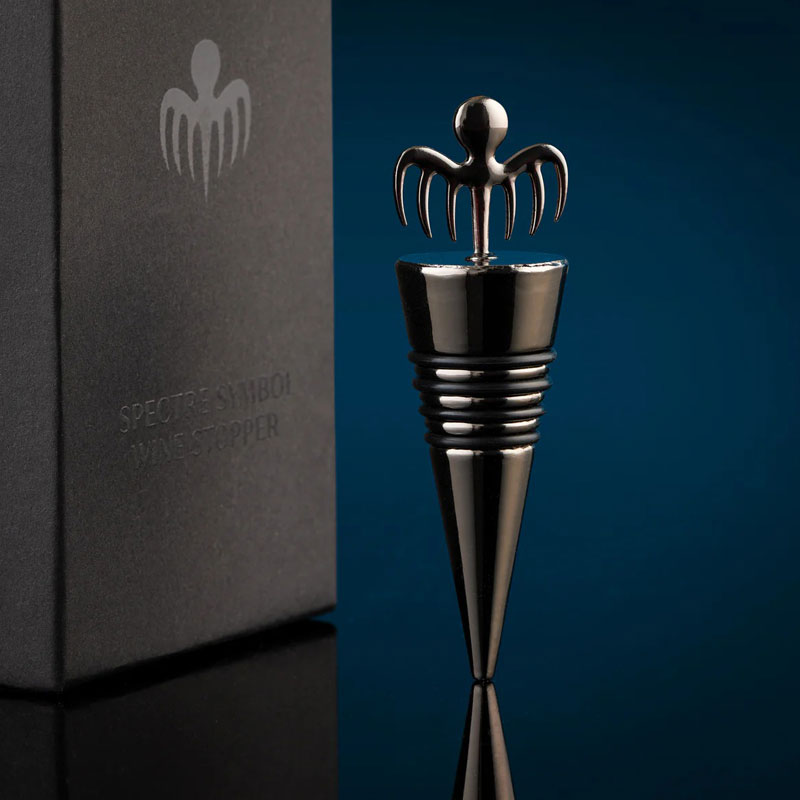 O símbolo da SPECTRE — Special Executive for Counter-intelligence, Terrorism, Revenge and Extortion — surgiu pela primeira vez em From Russia With Love (1963), tornando-se um dos emblemas mais reconhecidos da franquia. Atualizado para o filme Spectre (2015), ele se mantém como um ícone de poder secreto e sedução obscura. Agora, gravado nesta rolha de vinho, o logotipo transcende as telas e se converte em um acessório de luxo para apreciadores exigentes.