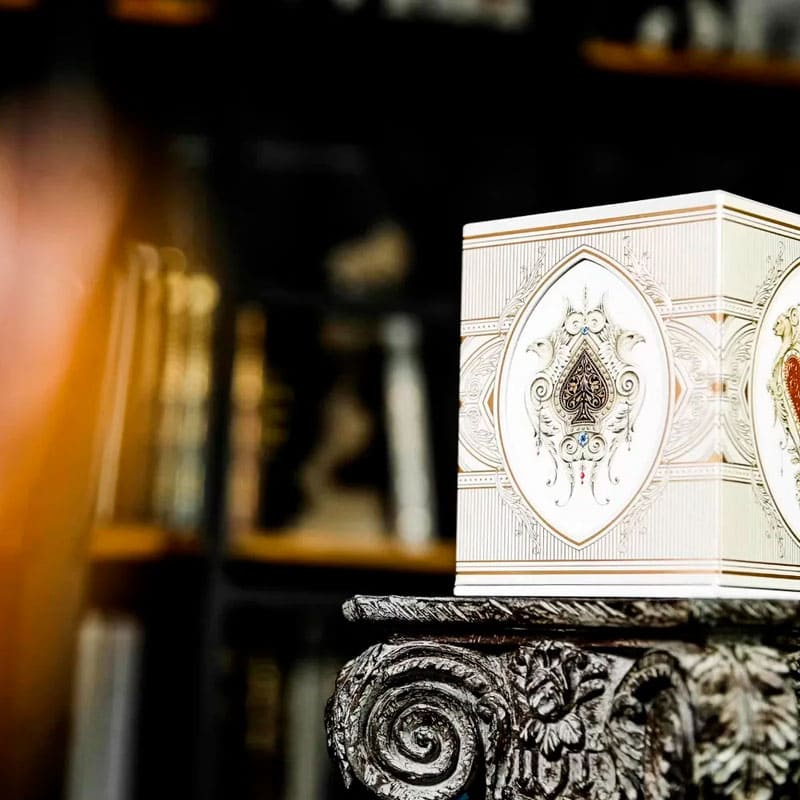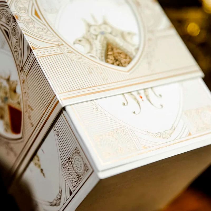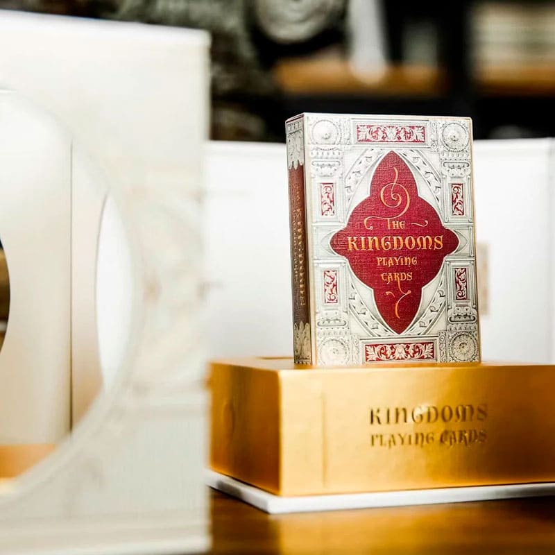 Inspirado na arquitetura majestosa dos palácios renascentistas, o Kingdom Classic Box Set da Ark Playing Card é uma verdadeira obra de arte em forma de baralho. Limitado a apenas 1000 unidades numeradas individualmente, este conjunto exclusivo traz dois baralhos — um em vermelho e outro em azul — apresentados em uma caixa artesanal em formato de palácio, que por si só já se torna uma peça de coleção.
