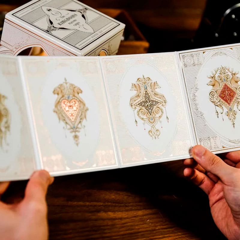 O Kingdom Classic Box Set não é apenas um baralho: é uma peça de coleção rara que une história, design e sofisticação. Uma criação que eterniza o espírito da Ark — exploração contínua e inovação infinita — e que ilumina qualquer coleção com sua aura majestosa.