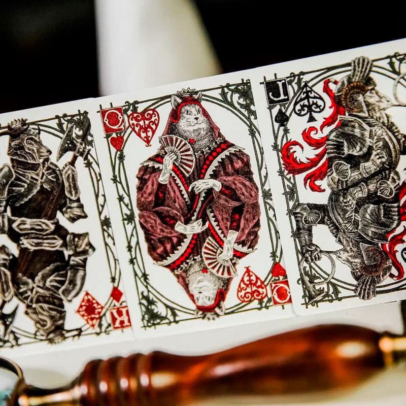 Um duelo épico entre luz e sombra, justiça e malevolência, inspira o Kinghood Classic Box Set, uma das edições mais impactantes já criadas pela Ark Playing Card. Mais do que um baralho, esta peça colecionável é uma narrativa visual que transporta o imaginário para o cenário de uma batalha decisiva ao amanhecer.
