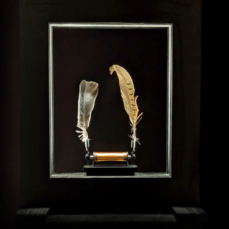 Existem objetos que transcendem a função para se tornarem poesia visual. A Slow Dance by Jeff Lieberman é exatamente isso: uma escultura luminosa que transforma elementos simples da natureza, como penas, em um espetáculo de movimento hipnótico em câmera lenta – tudo diante dos seus olhos, sem truques, sem artifícios digitais.