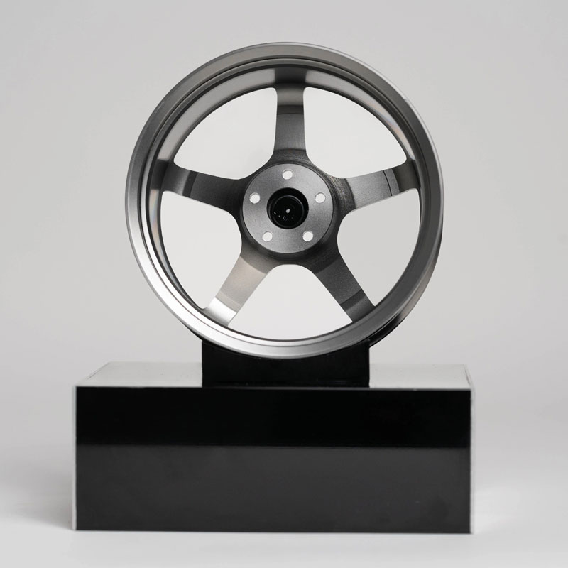 A TE37 Platinum Grey e Amarelo da Stance Rims é um tributo à paixão automotiva elevada à arte. Inspirada em uma das rodas mais icônicas do universo racing, esta miniatura em escala 1/5 foi criada para capturar não apenas a forma, mas a emoção que um verdadeiro entusiasta sente diante de uma peça de engenharia impecável.