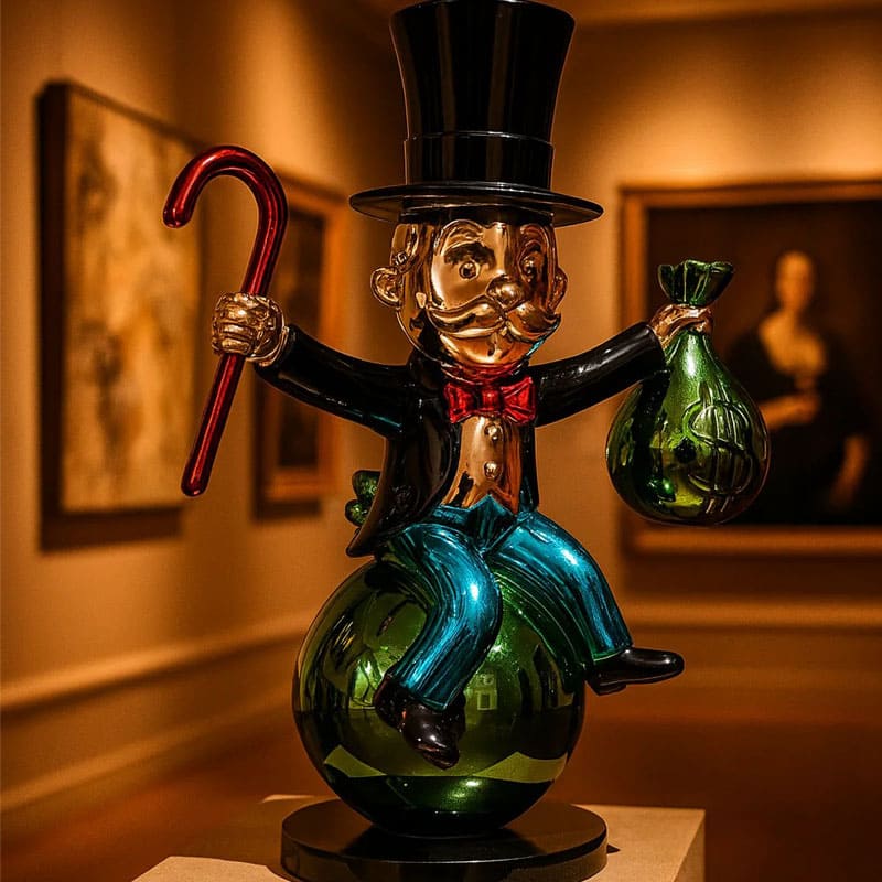 O imaginário do jogo mais famoso do mundo encontra a sofisticação da arte contemporânea com a escultura Monopoly Sitting on $ Bag™ – Edição Limitada, da prestigiada Atelier Home. Uma peça que transcende o conceito de decoração para se tornar um manifesto artístico de riqueza, ousadia e estilo, criada para colecionadores que reconhecem que o luxo também pode ser divertido e provocador.