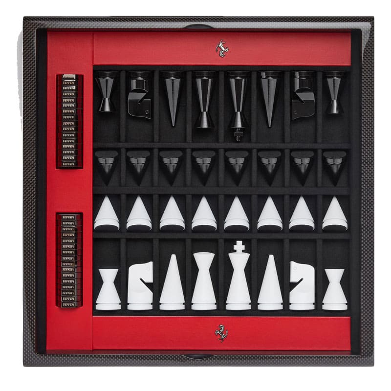 O Jogo de Xadrez Oficial da Ferrari não é apenas um passatempo: é uma experiência sensorial, um encontro entre design automotivo e tradição intelectual. Uma peça rara que transforma cada movimento em uma celebração da excelência.