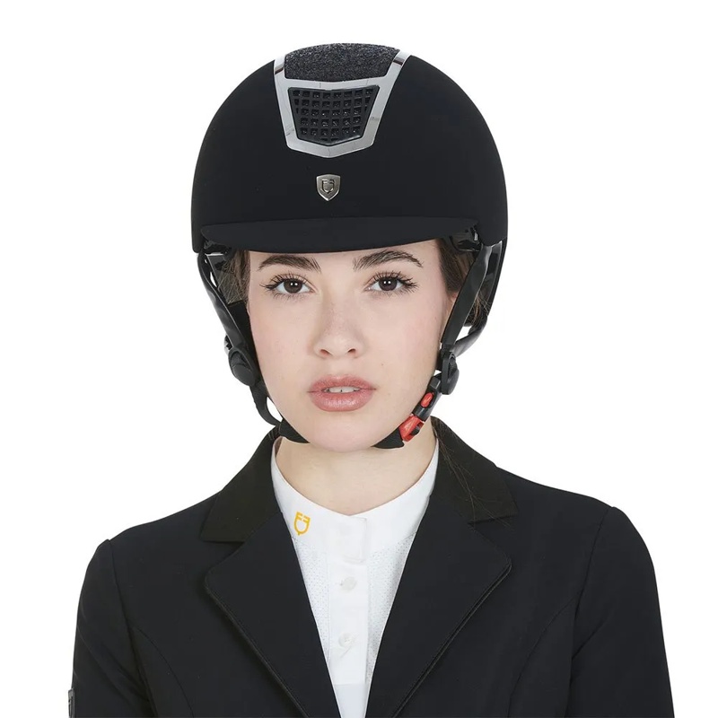 Com o Capacete Eclipse Stone Velvet Rowel Fitting, a Equestro reafirma seu compromisso com o luxo e a segurança no universo equestre.