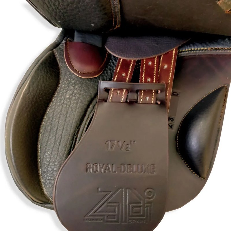 A Sela de montaria uso geral Royal Deluxe da Zaldi é uma expressão máxima de elegância e performance no hipismo. Projetada para atender aos mais exigentes cavaleiros, combina design sofisticado com a mais alta tecnologia de fabricação, proporcionando uma experiência incomparável de conforto e controle.