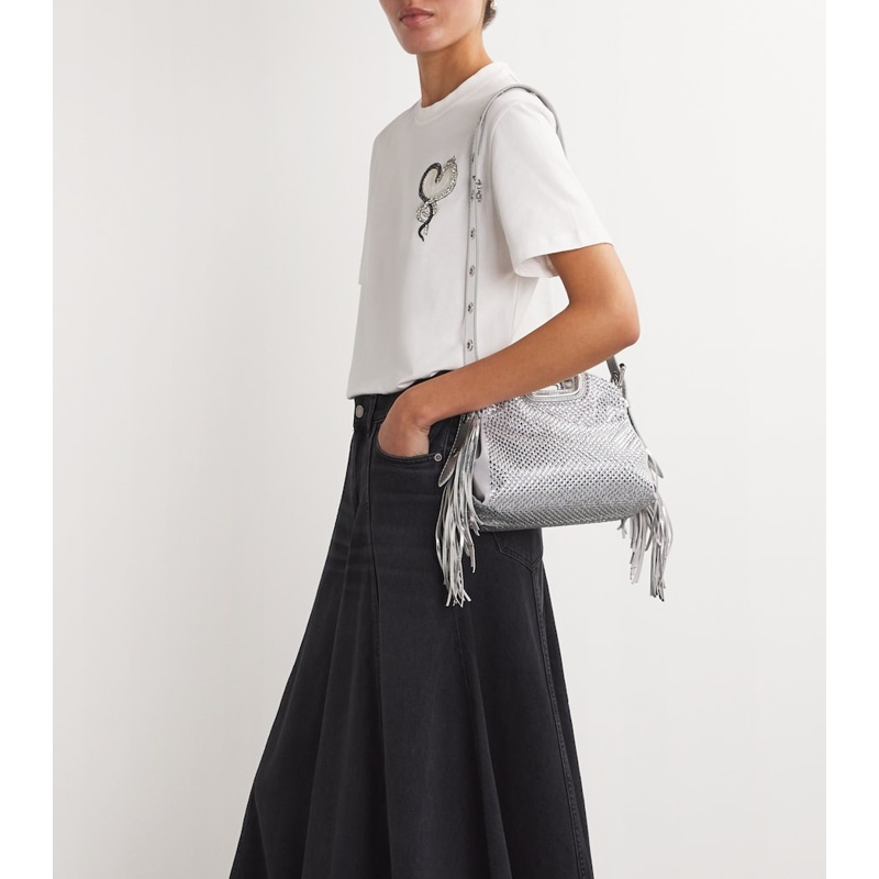 Maje eleva o cotidiano com esta shoulder de apelo contemporâneo. A Bolsa Shoulder Mini Embellished Miss M combina linhas precisas e proporções equilibradas para um efeito de luxo discreto.