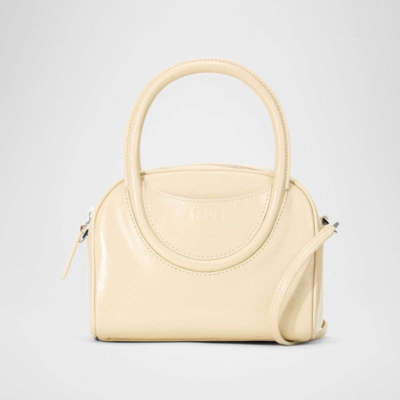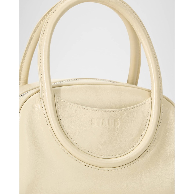 A Staud Bolsa Handle Maude Mini Bowler interpreta o estilo Handle em design de mão, com arquitetura definida com presença feminina e estrutura impecável. Com alça de mão.