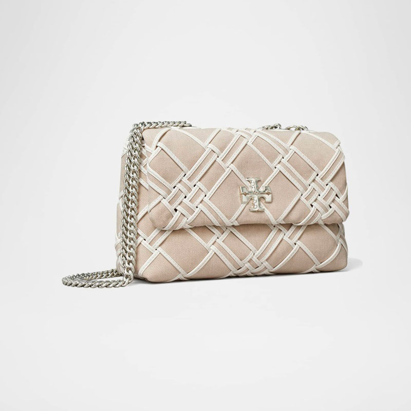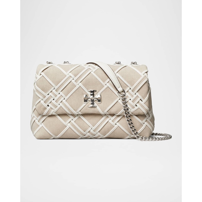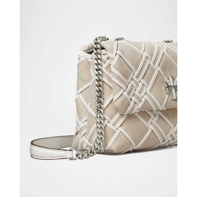 A Tory Burch Bolsa Shoulder Kira Small Woven Canvas Convertible interpreta o estilo Shoulder em design de ombro, com silhueta que abraça o corpo e otimiza mobilidade. Materiais como canvas, com alça de ombro.
