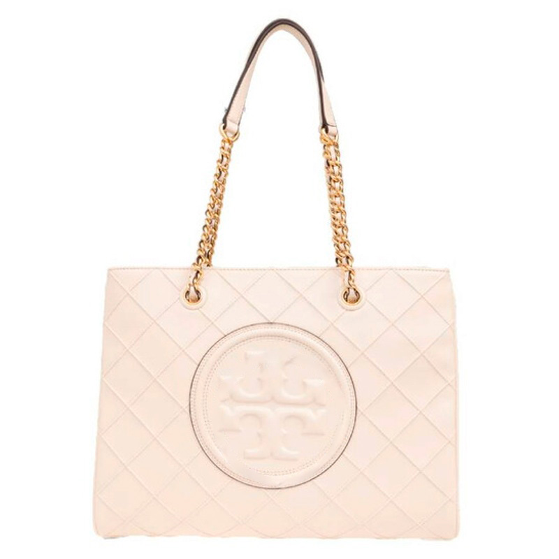 A Tory Burch Bolsa Shopper Napa Soft Chain Fleming interpreta o estilo Shopper em design de ombro, com volume generoso e linhas limpas. Com alça de corrente.