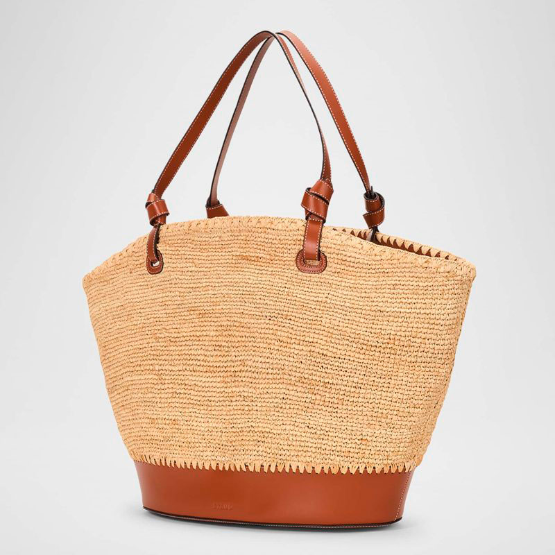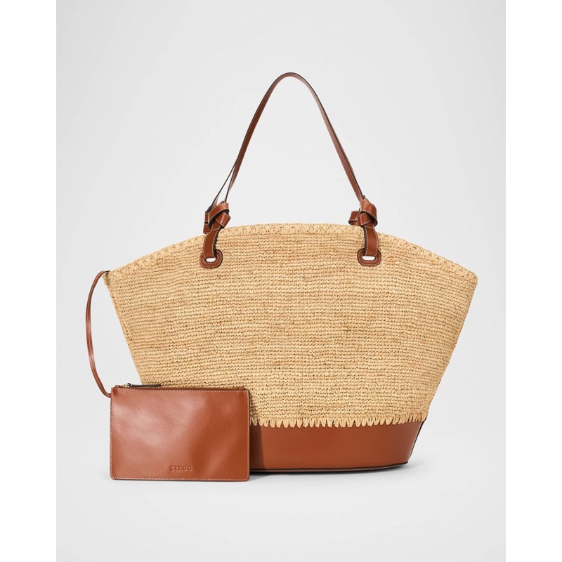 A Staud Bolsa Shopper Squillo Raffia interpreta o estilo Shopper em design de ombro, com volume generoso e linhas limpas. Materiais como rafia/palha, com alça de ombro, detalhes icônicos em monograma.